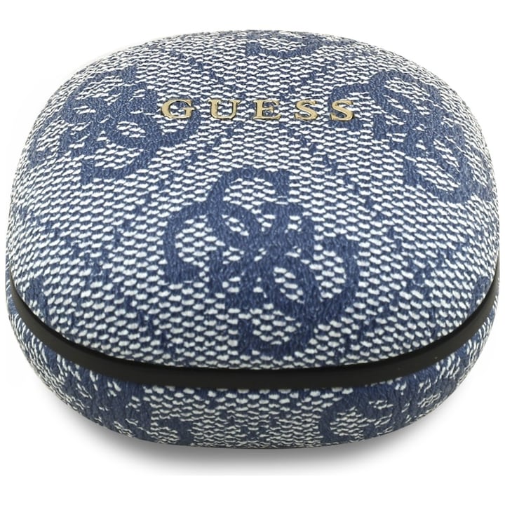 Carcasa este acoperită cu eco-piele embosată 4G și logo metalic Guess, oferind un aspect sofisticat și distinctiv. Formatul in-ear asigură potrivire confortabilă și izolare eficientă a sunetului, pentru o experiență audio plăcută și stabilă.