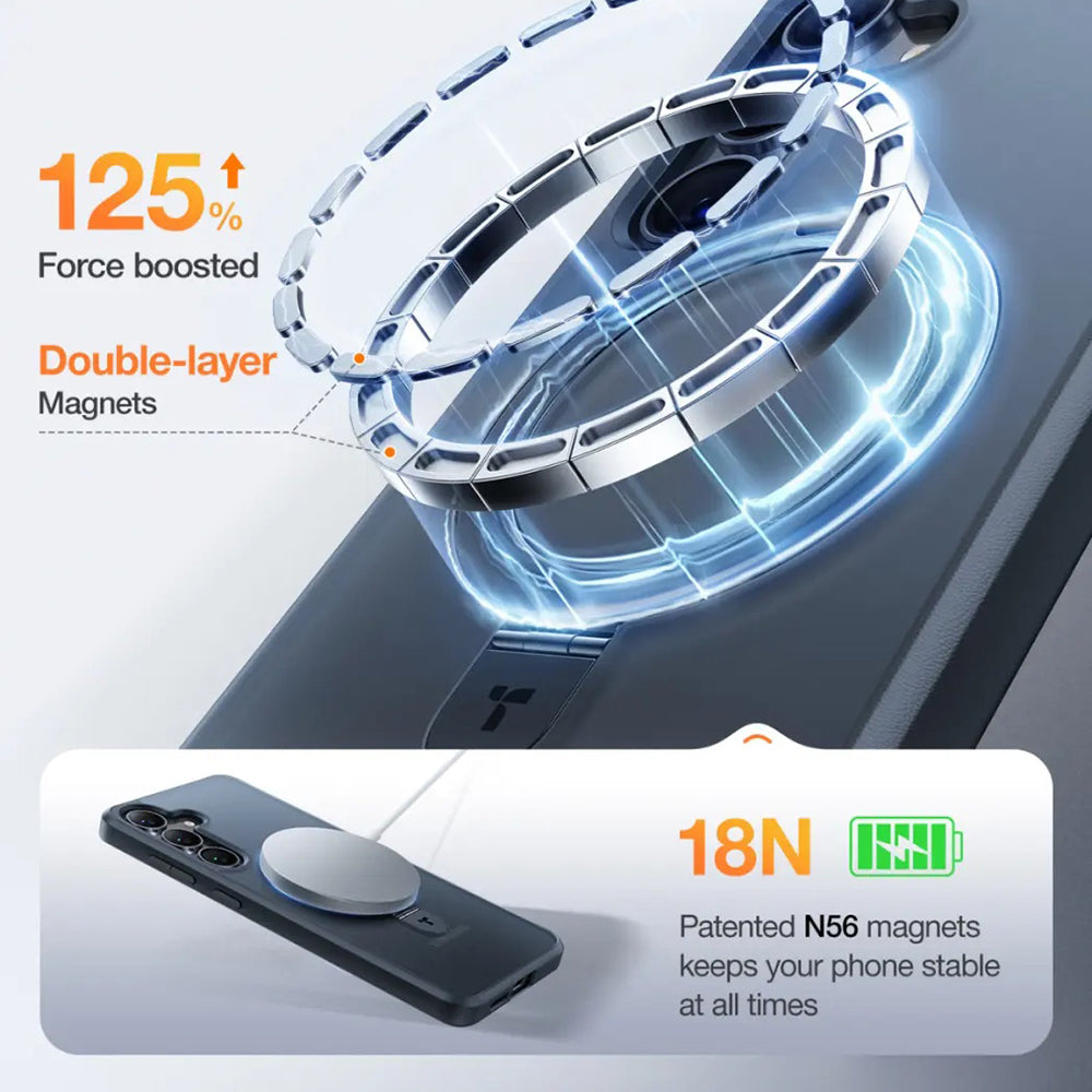Husa de protectie Torras Ostand MagSafe Series compatibil cu Samsung Galaxy S25, Negru