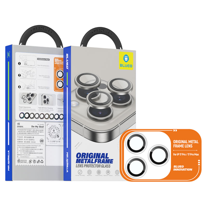 Folie de protectie Camera Spate Blueo Metal Frame pentru Apple iPhone 17 Pro Max / 17 Pro, Sticla Securiz