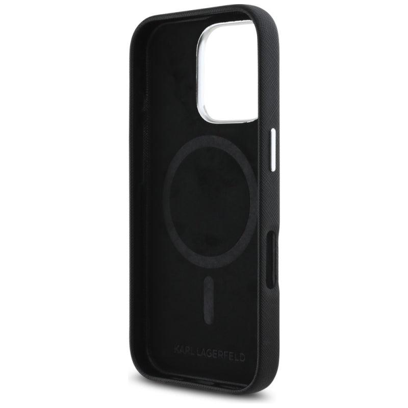 Husa MagSafe pentru Apple iPhone 16 Pro, Karl Lagerfeld, Saffiano Full Wrapped Elongated Metal Logo